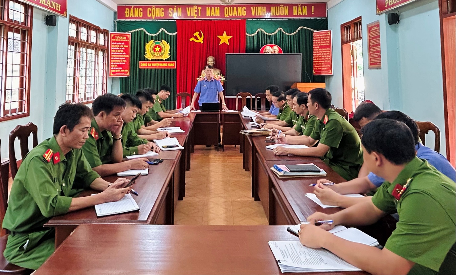 Kết quả cho thấy, Công an huyện Mang Yang đã bố trí phòng trực ban và tổ chức trực ban hình sự 24/24 giờ để tiếp nhận tin báo, tố giác về tội phạm. Khi tiếp nhận đã lập biên bản, vào sổ sách thụ lý, theo dõi đối với tin báo đã tiếp nhận theo quy định. Sau khi tiếp nhận tố giác, tin báo về tội phạm, Cơ quan Cảnh sát điều tra đã tiến hành phân loại theo quy định; kịp thời phân công Phó thủ trưởng, Điều tra viên, cán bộ điều tra thụ lý, giải quyết nguồn về tội phạm, đồng thời thông báo bằng văn bản cho Viện kiểm sát. Quá trình giải quyết nguồn tin về tội phạm, Điều tra viên đã lập kế hoạch kiểm tra, xác minh, đồng thời thực hiện những nội dung yêu cầu xác minh tố giác, tin báo về tội phạm của Viện kiểm sát. Đối với tố giác, tin báo về tội phạm có tính chất phức tạp đều được Điều tra viên phối hợp chặt chẽ với Kiểm sát viên để giải quyết và đưa ra cuộc họp 03 ngành hàng tháng để trao đổi thống nhất hướng giải quyết.