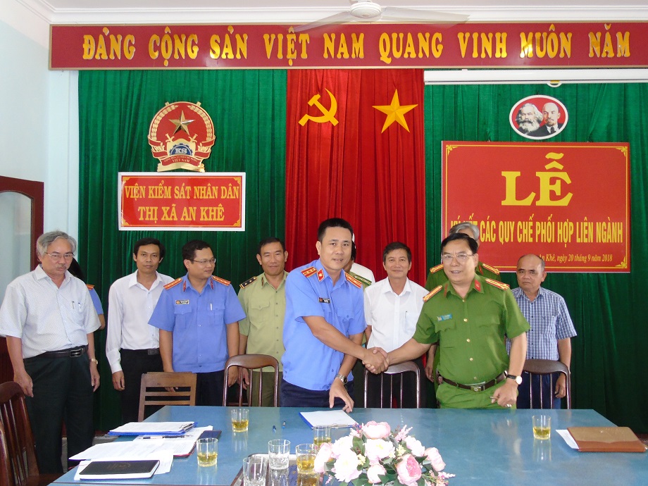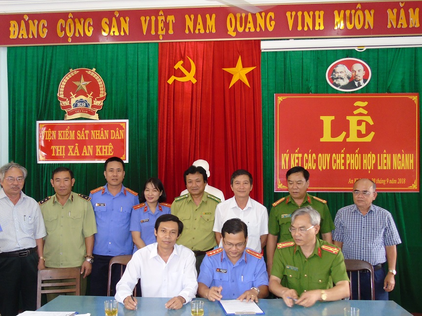 Vừa qua, Viện kiểm sát nhân dân thị xã An Khê đã chủ trì, phối hợp với liên ngành Công an, Tòa án, Đội Quản lý thị trường số 02, Thanh tra, Chi cục Thuế, Hạt Kiểm lâm thị xã An Khê tổ chức Lễ ký kết 04 Quy chế phối hợp công tác gồm:
